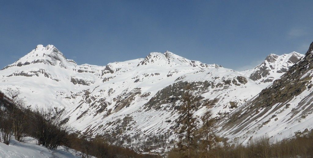 Si l’enneigement en bas est maintenant plutôt correct avec le retour d’est de début mars, en altitude les faces nord sont encore bien sèches comme peuvent en témoigner ici le Grande Ciamarella ou la Pointe Tonini.