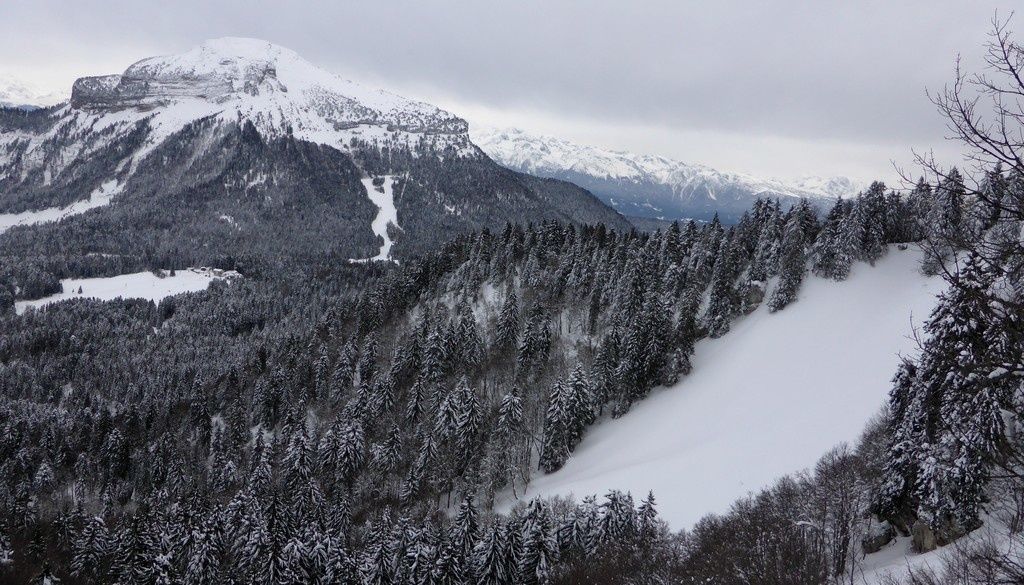 Il ne nous reste plus qu’à remonter, au début la trace est faite et puis très rapidement celle-ci s’arrête. Du coup tant qu’à tracer au lieu de filer vers Canaple par la piste, plutôt plate par endroit, on remonte directement au Mont Fromage. De petites barres le défendent mais en longeant un peu on finit par trouver le passage.