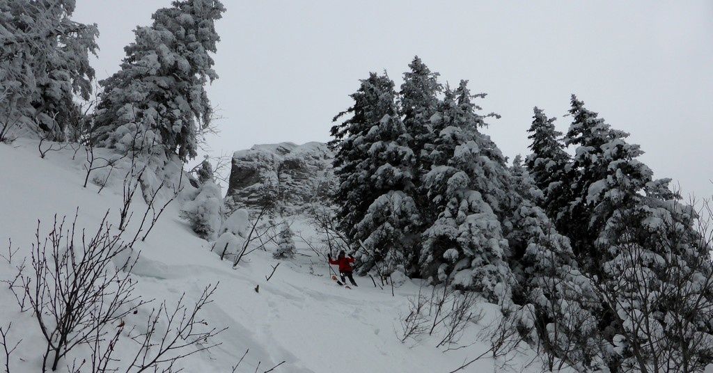 Un endroit bien joli que nous ne connaissions pas. Voilà il nous reste plus qu’à nous laisser glisser jusqu’à la voiture. 11h45 on y est, largement le temps de rentrer tranquillement pour vaquer à d’autres occupations oh combien plus importantes, la sieste pour l’un, le travail pour l’autre (je vous laisse deviner qui est qui…). Avec ces conditions l'if dans cette formule expres c’est un très bon plan puisque qu’outre que la remontée en partie dans le brouillard ne faisait pas vraiment rêver, la descente en face est toute croûtée le faisait encore moins, comme nous le confirmeront 2 personnes redescendues par les Cottaves et croisées au parking du haut.