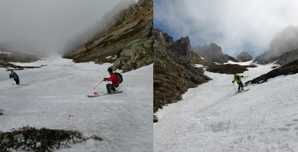 Sur le bas les cumulus viennent nous taquiner et on a droit à 2 petits déchaussages, un très court et qui normalement passe et un plus classique en fin de saison, au niveau de la petite tour.